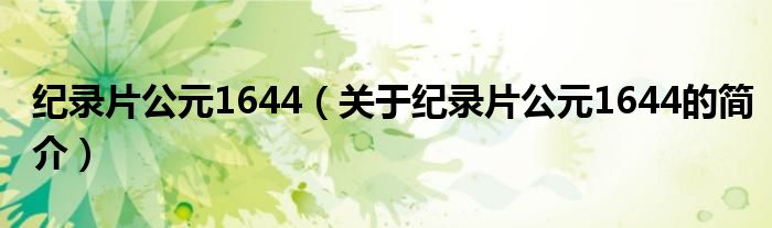 本文關(guān)于紀錄片公元1644的簡介就講解完畢,希望對大家有所幫助。