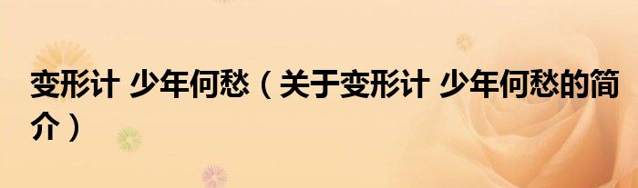 本文關于變形計 少年何愁的簡介就講解完畢,希望對大家有所幫助。