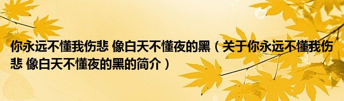 大家好,你永遠不懂我傷悲 像白天不懂夜的黑,關于你永遠不懂我傷悲 像白天不懂夜的黑的簡介很多人還不知道,現在讓我們一起來看看吧!