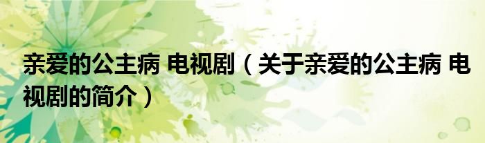 大家好,親愛的公主病 電視劇,關于親愛的公主病 電視劇的簡介很多人還不知道,現在讓我們一起來看看吧!