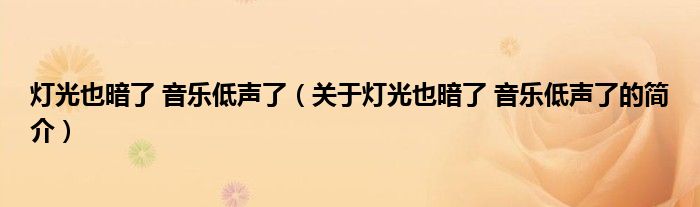 大家好,燈光也暗了 音樂低聲了,關于燈光也暗了 音樂低聲了的簡介很多人還不知道,現在讓我們一起來看看吧!