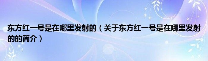 本文關于東方紅一號是在哪里發射的的簡介就講解完畢,希望對大家有所幫助。