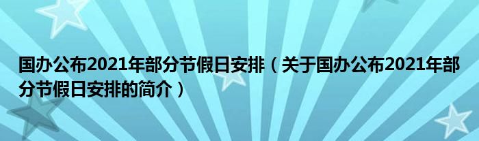 本文關于國辦公布2021年部分節假日安排的簡介就講解完畢,希望對大家有所幫助。