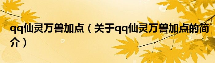 本文關于qq仙靈萬獸加點的簡介就講解完畢,希望對大家有所幫助。