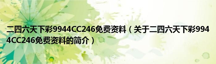 本文關(guān)于二四六天下彩9944CC246免費(fèi)資料的簡介就講解完畢,希望對大家有所幫助。