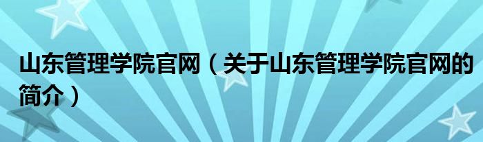大家好,山東管理學院官網,關于山東管理學院官網的簡介很多人還不知道,現在讓我們一起來看看吧!