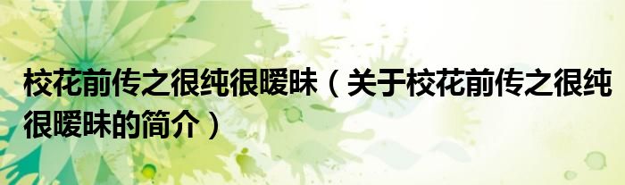大家好,校花前傳之很純很曖昧,關于校花前傳之很純很曖昧的簡介很多人還不知道,現在讓我們一起來看看吧!