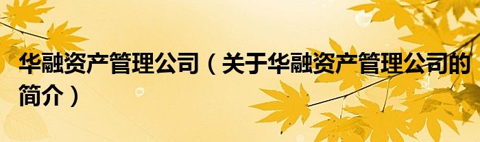 本文關(guān)于華融資產(chǎn)管理公司的簡介就講解完畢,希望對(duì)大家有所幫助。