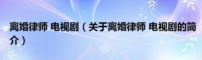 本文關(guān)于離婚律師 電視劇的簡介就講解完畢,希望對大家有所幫助。