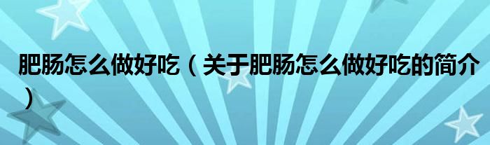 本文關于肥腸怎么做好吃的簡介就講解完畢,希望對大家有所幫助。