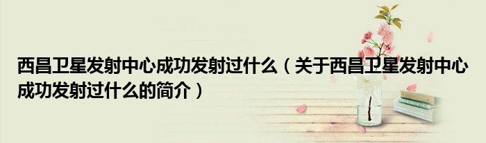 本文關于西昌衛星發射中心成功發射過什么的簡介就講解完畢,希望對大家有所幫助。