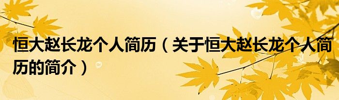 大家好,恒大趙長龍個人簡歷,關于恒大趙長龍個人簡歷的簡介很多人還不知道,現在讓我們一起來看看吧!
