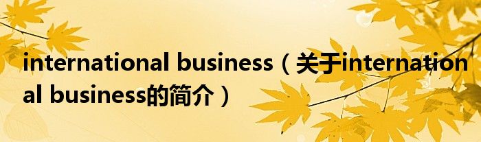 本文關于international business的簡介就講解完畢,希望對大家有所幫助。