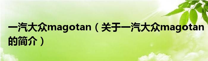 大家好,一汽大眾magotan,關(guān)于一汽大眾magotan的簡介很多人還不知道,現(xiàn)在讓我們一起來看看吧!