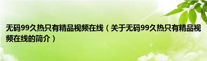 本文關于無碼99久熱只有精品視頻在線的簡介就講解完畢,希望對大家有所幫助。