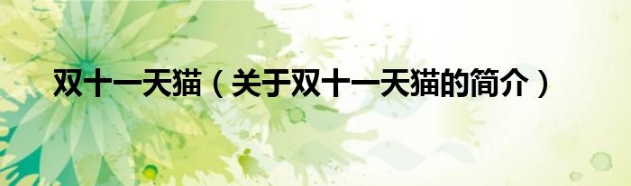 大家好,雙十一天貓,關于雙十一天貓的簡介很多人還不知道,現在讓我們一起來看看吧!