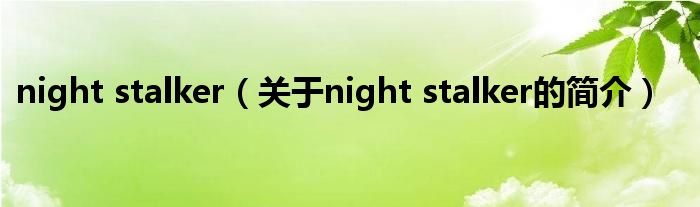 大家好,night stalker,關于night stalker的簡介很多人還不知道,現在讓我們一起來看看吧!
