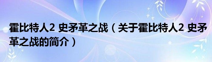 大家好,霍比特人2 史矛革之戰,關于霍比特人2 史矛革之戰的簡介很多人還不知道,現在讓我們一起來看看吧!
