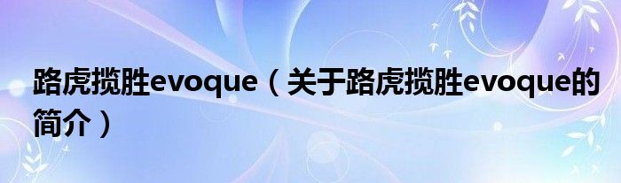 本文關于路虎攬勝evoque的簡介就講解完畢,希望對大家有所幫助。