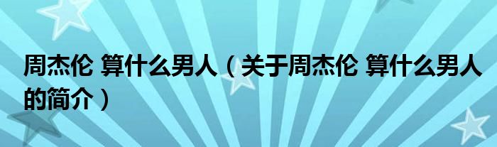 大家好,周杰倫 算什么男人,關于周杰倫 算什么男人的簡介很多人還不知道,現在讓我們一起來看看吧!