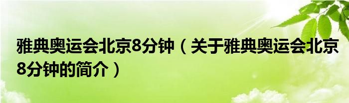 本文關于雅典奧運會北京8分鐘的簡介就講解完畢,希望對大家有所幫助。