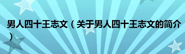 大家好,男人四十王志文,關(guān)于男人四十王志文的簡介很多人還不知道,現(xiàn)在讓我們一起來看看吧!
