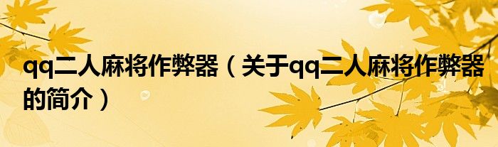 本文關(guān)于qq二人麻將作弊器的簡介就講解完畢,希望對大家有所幫助。