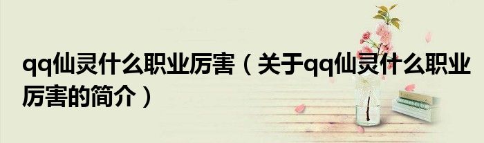 本文關于qq仙靈什么職業厲害的簡介就講解完畢,希望對大家有所幫助。