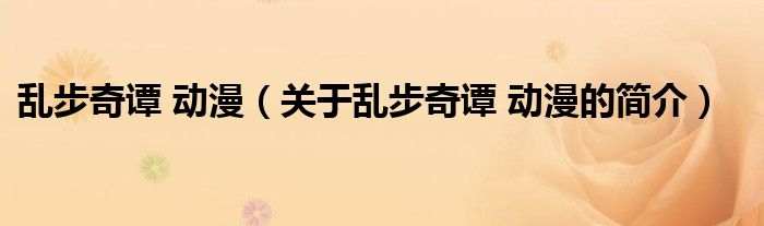 本文關于亂步奇譚 動漫的簡介就講解完畢,希望對大家有所幫助。