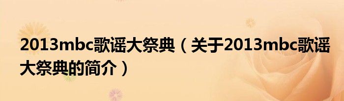 本文關于2013mbc歌謠大祭典的簡介就講解完畢,希望對大家有所幫助。