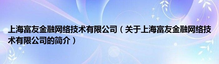 本文關(guān)于上海富友金融網(wǎng)絡(luò)技術(shù)有限公司的簡(jiǎn)介就講解完畢,希望對(duì)大家有所幫助。