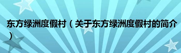 大家好,東方綠洲度假村,關(guān)于東方綠洲度假村的簡介很多人還不知道,現(xiàn)在讓我們一起來看看吧!