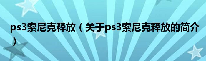 大家好,ps3索尼克釋放,關于ps3索尼克釋放的簡介很多人還不知道,現在讓我們一起來看看吧!