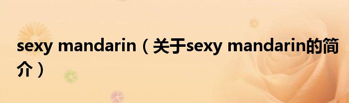 本文關于sexy mandarin的簡介就講解完畢,希望對大家有所幫助。
