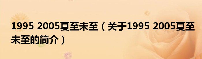 本文關于1995 2005夏至未至的簡介就講解完畢,希望對大家有所幫助。