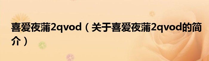 本文關(guān)于喜愛(ài)夜蒲2qvod的簡(jiǎn)介就講解完畢,希望對(duì)大家有所幫助。