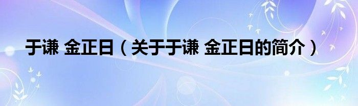 大家好,于謙 金正日,關于于謙 金正日的簡介很多人還不知道,現在讓我們一起來看看吧!