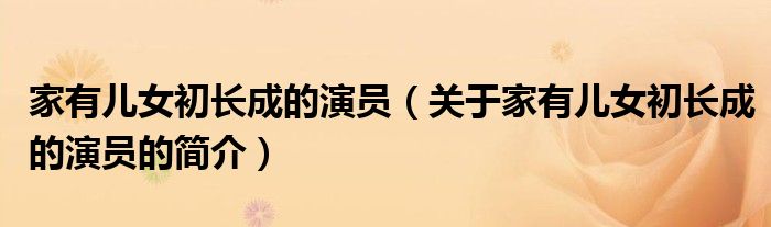 大家好,家有兒女初長成的演員,關于家有兒女初長成的演員的簡介很多人還不知道,現(xiàn)在讓我們一起來看看吧!