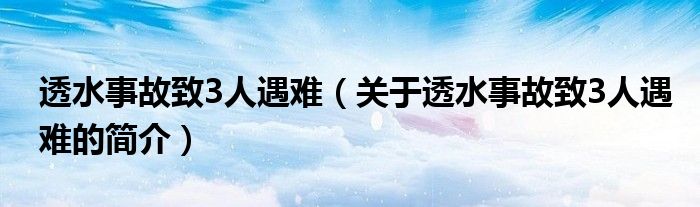 本文關于透水事故致3人遇難的簡介就講解完畢,希望對大家有所幫助。