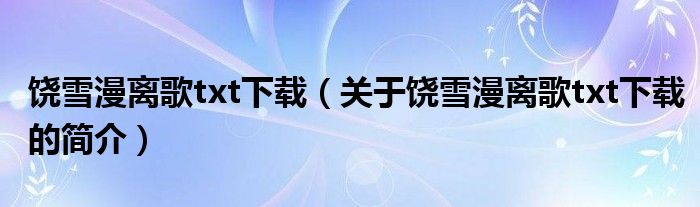 本文關(guān)于饒雪漫離歌txt下載的簡介就講解完畢,希望對大家有所幫助。
