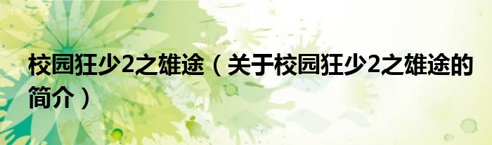 本文關于校園狂少2之雄途的簡介就講解完畢,希望對大家有所幫助。