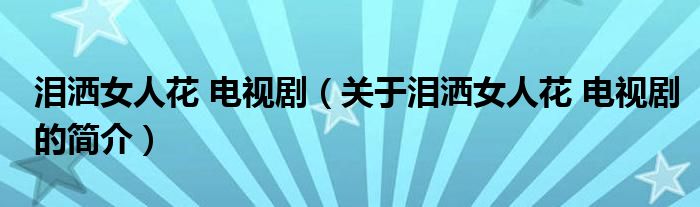 本文關于淚灑女人花 電視劇的簡介就講解完畢,希望對大家有所幫助。