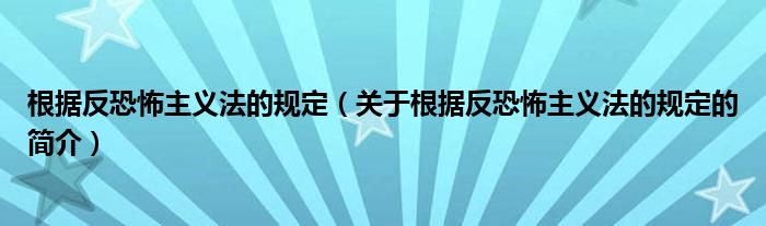大家好,根據反恐怖主義法的規定,關于根據反恐怖主義法的規定的簡介很多人還不知道,現在讓我們一起來看看吧!