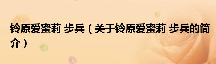 本文關于鈴原愛蜜莉 步兵的簡介就講解完畢,希望對大家有所幫助。