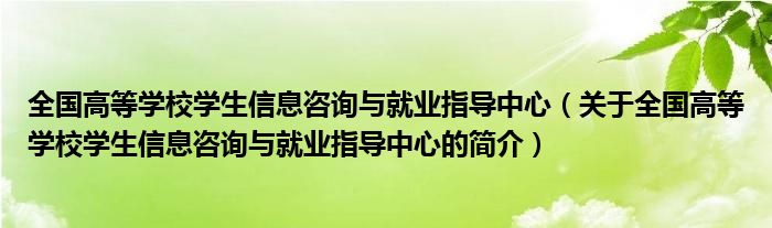 本文關于全國高等學校學生信息咨詢與就業指導中心的簡介就講解完畢,希望對大家有所幫助。