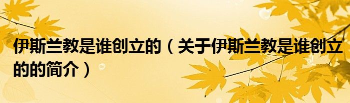 本文關于伊斯蘭教是誰創立的的簡介就講解完畢,希望對大家有所幫助。