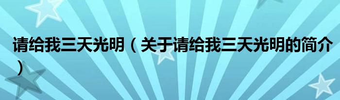 本文關于請給我三天光明的簡介就講解完畢,希望對大家有所幫助。