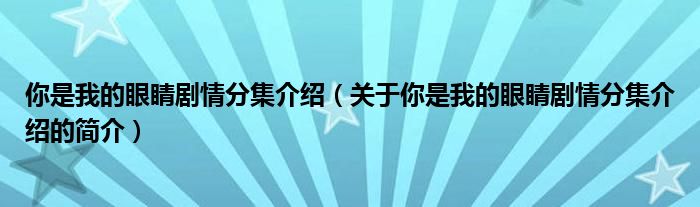 本文關(guān)于你是我的眼睛劇情分集介紹的簡(jiǎn)介就講解完畢,希望對(duì)大家有所幫助。