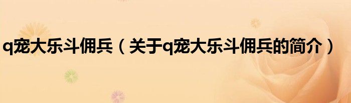本文關于q寵大樂斗傭兵的簡介就講解完畢,希望對大家有所幫助。
