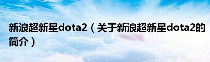 本文關于新浪超新星dota2的簡介就講解完畢,希望對大家有所幫助。